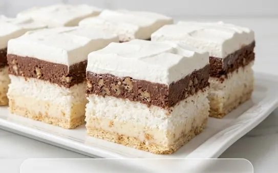 5. Dekoracija i hlađenje: Umutite 200ml hladne slatke pavlake u čvrst šlag i nanesite ga preko tamnog sloja. Špatulom napravite blage talase po površini. Tortu obavezno stavite u frižider na najmanje 5 do 6 sati (idealno preko noći) kako bi se slojevi maksimalno stegli.