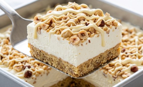 Tajna savršenog preseka (kao na fotografiji) leži u čvrstoj, ali sočnoj podlozi obogaćenoj mlevenim orasima, preko koje ide izdašan, vazdušasti krem od mascarpone sira i slatke pavlake. Obilno posuta prepečenim lešnicima i išarana belom čokoladom, ova torta ne samo da izgleda kao iz luksuzne poslastičarnice, već se doslovno topi u ustima.