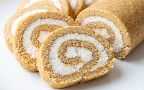 4. Filovanje: Dobijeni beli krem ravnomerno premažite preko razvijene keks kore, ostavljajući oko 2 centimetra praznog prostora na onoj ivici prema kojoj ćete rolati, kako fil ne bi iscurio.