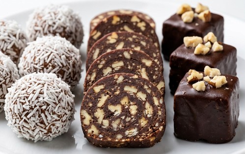 Dobrodošli! Danas pravimo tri vrste fantastičnih sitnih kolača od samo jedne osnovne smeše bez pečenja. Ove preukusne kokos bombice, tamni rolat sa orasima i čokoladne kikiriki kocke ukrasiće svaku vašu trpezu.