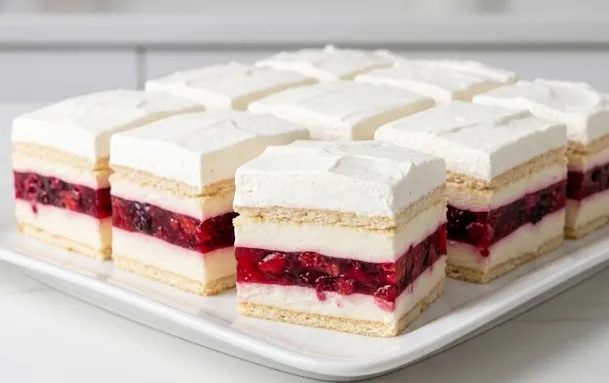 Kada vam je potreban desert koji podjednako dobro izgleda i osvežava, kombinacija kiselkastog šumskog voća i blage, slatke vanile je nepogrešiv izbor. Ovaj slojeviti kolač sa keksom idealan je za tople dane ili svečane prilike kada želite da zadivite goste čistim, geometrijskim presekom bez paljenja rerne.