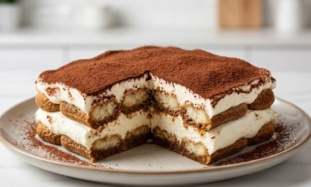 Dobrodošli! Danas pripremamo jedan od najpoznatijih svetskih deserata, čuveni italijanski tiramisu, i to u brzoj verziji bez sirovih jaja i bez pečenja. Gledajući fotografiju ovog prelepog kolača, jasno vidimo njegove savršene slojeve: mekane piškote natopljene aromatičnom kafom sa rumom i izuzetno bogat, svilenkast beli krem od mascarpone sira. Na samom vrhu nalazi se prepoznatljivi debeli sloj tamnog kakaa koji daje savršen balans slatkoći kreme. Hajde da napravimo ovaj elegantni desert zajedno korak po korak!