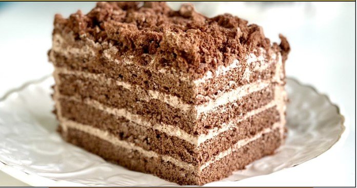 4. Slaganje torte Isecite ohlađeni biskvit na slojeve. Da bi kolač bio još sočniji, kore po želji možete natopiti toplim mlekom. Ja lično nisam natapala kore u ovom videu, a kolač je i pored toga ispao neverovatno nežan i mekan. Nafilujte slojeve kremom i dekorišite mrvicama biskvita odozgo.