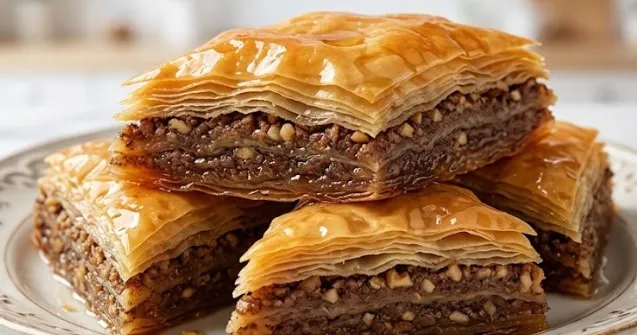 Dobrodošli! Danas pripremamo kraljicu orijentalnih poslastica – domaću baklavu. Gledajući fotografiju ovog savršenog deserta, jasno vidimo bezbroj tankih, hrskavih kora zlatne boje i bogat središnji sloj od mlevenih oraha, sve to savršeno natopljeno slatkim sirupom koji baklavi daje prepoznatljiv sjaj. Tajna vrhunske baklave je u strpljenju, dobrom puteru i pravilnom zalivanju. Hajde da je napravimo zajedno korak po korak!