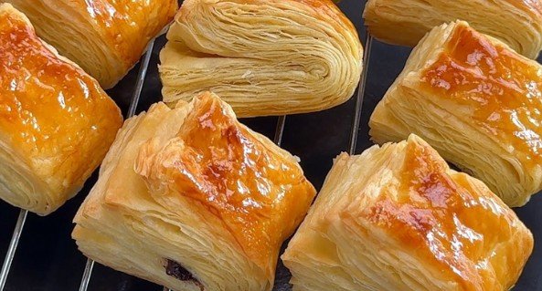 Nakon mnogo pokušaja, ovo je definitivno najbolja i najlakša metoda. Pravi se od samo 4 osnovna sastojka koja se lako nabavljaju, i što je najvažnije, ne treba vam nikakav specijalni puter za lisnato testo, sasvim je dovoljan onaj obični! Pogledajte samo to savršeno razlistano pecivo predivne zlatne boje, koje je neverovatno hrskavo spolja, a mekano iznutra na fotografiji! Krenimo na pripremu ovog pekarskog savršenstva.