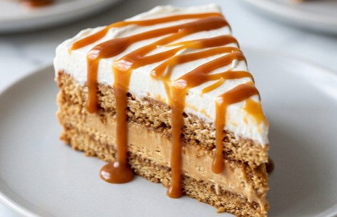 Tajna njenog savršenog preseka (kao na fotografiji) leži u stabilnom karamel kremu koji čvrsto drži slojeve keksa. Keks se samo na sekundu umače u kafu kako bi zadržao formu, a odozgo dolazi vazdušasti beli oblak od slatke pavlake i bogati “drip” od karamele. Ovaj desert se pravi neverovatno brzo, a izgleda i miriše kao da je iz najfinije poslastičarnice!