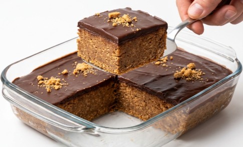 6. Dekoracija i hlađenje: Odmah, dok se čokolada još nije stegla, po površini nepravilno pospite onu kašiku mlevene Plazme koju ste sačuvali na početku (za onaj predivan, rustičan izgled sa fotografije). Tortu stavite u frižider na najmanje 2 sata kako bi keks potpuno upio sok i kako bi se glazura stegla pre sečenja.