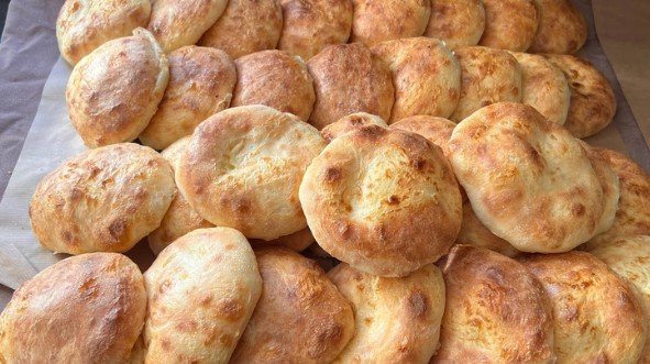 Ovi mali, debeljuškasti hlepčići su neverovatno mekani i ukusni, te vam toplo preporučujem da ih napravite kod kuće. Od 2 kilograma brašna dobićete tačno 35 fenomenalnih lepinja za kebab. Odlične su za pripremu unapred jer ih možete zamrznuti, a kada ih izvadite, ostaće jednako meke i sveže kao da ste ih tek ispekli! Pogledajte samo tu predivnu, rumenu hrpu sveže pečenih lepinja na fotografiji! Krenimo na pripremu ovog izdašnog recepta.