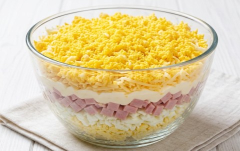 Kada želite predjelo koje istovremeno krasi sto i obara sa nogu svojim bogatim ukusom, Mimoza je uvek prvi izbor. Kombinacija nežnog krompira, slane šunke, topljivog sira i osvežavajućeg preliva stvara harmoniju kojoj je teško odoleti.