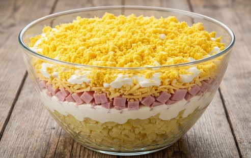 Za ovu raskošnu salatu biće vam potrebne sasvim obične namirnice, a pažljivo slaganje slojeva obezbediće onaj prepoznatljiv i izuzetno bogat ukus.