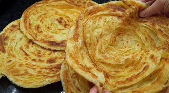 7. Pečenje u tiganju: Pecite razvijene pogače u suvom ili blago podmazanom tiganju. Veoma je važno da ih pečete uz neprestano okretanje sa jedne na drugu stranu. Na taj način će se ravnomerno ispeći, a slojevi će se savršeno razdvojiti. Pecite sve pogače na isti način dok ne porumene.