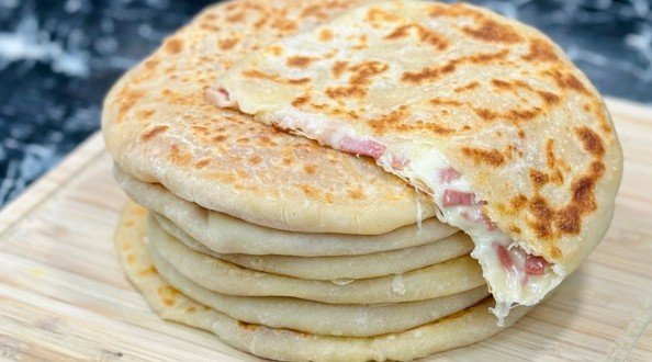 Ovi preukusni hlepčići se pripremaju bez uključivanja rerne i veoma su ekonomični. Testo se pravi od samo četiri jednostavna sastojka, neverovatno je mekano, ne zahteva dugotrajno mešenje i uopšte ne sadrži kvasac. Pogledajte samo to predivno, rastegljivo topljeno punjenje i zlatnu koricu pečenu u tiganju na fotografiji! Krenimo na brzu pripremu ovog fantastičnog obroka.
