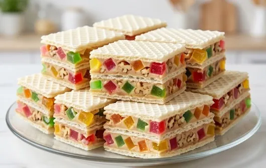 Kada želite da vaša tacna sa sitnim kolačima zablista, šarene oblande su apsolutno nezaobilazne. Prepoznatljive po svom “mozaik” preseku, one spajaju hrskavost oblandi i oraha sa žvakastom, voćnom teksturom žele bombona.