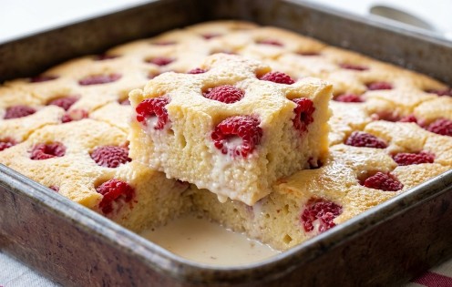 Za ovaj starinski sočni desert biće vam potrebni sledeći sastojci a maline obavezno dobro operite i osušite pre ređanja u pleh.