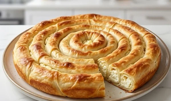 Tajna njenog savršenog izgleda sa fotografije – gde je spoljašnost predivno zlatna i hrskava, a unutrašnjost izuzetno sočna i bogata filom – leži u tehnici premazivanja i rolanja. Umesto da samo redamo kore, mi ih premazujemo mešavinom otopljenog putera i gazirane vode, a zatim rolano u oblik spirale (puža). Gazirana voda podiže testo, dok puter daje onu neodoljivu, bogatu aromu koja ovu pitu izdvaja od svih ostalih.