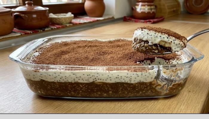 Ovaj zdrav desert od ovsene kaše bez pečenja predstavlja savršenu kombinaciju kremaste teksture sa bogatim ukusom kakao praha i oraha. Zahvaljujući jednostavnoj pripremi, ovo je idealna opcija za uštedu vremena i uživanje u zdravijoj varijanti poslastice tokom dana.